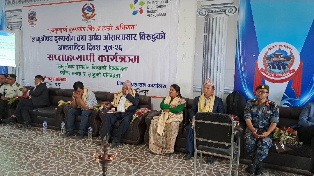 लागु औषध दुरुपयोग तथा अवैध ओसार-पसार विरुद्धको अन्तर्राष्ट्रिय दिवस २६ जुन २०२३ मनाउने सन्दर्भमा सरोकारवाला संस्था र व्यक्तिहरुको सहभागितामा गोदावरी नगरपालिकाको कार्यालय, बज्रबाराही, ललितपुरमा प्रमुख जिल्ला अधिकारी श्री रुद्रप्रसाद पण्डितज्यूको अध्यक्षता