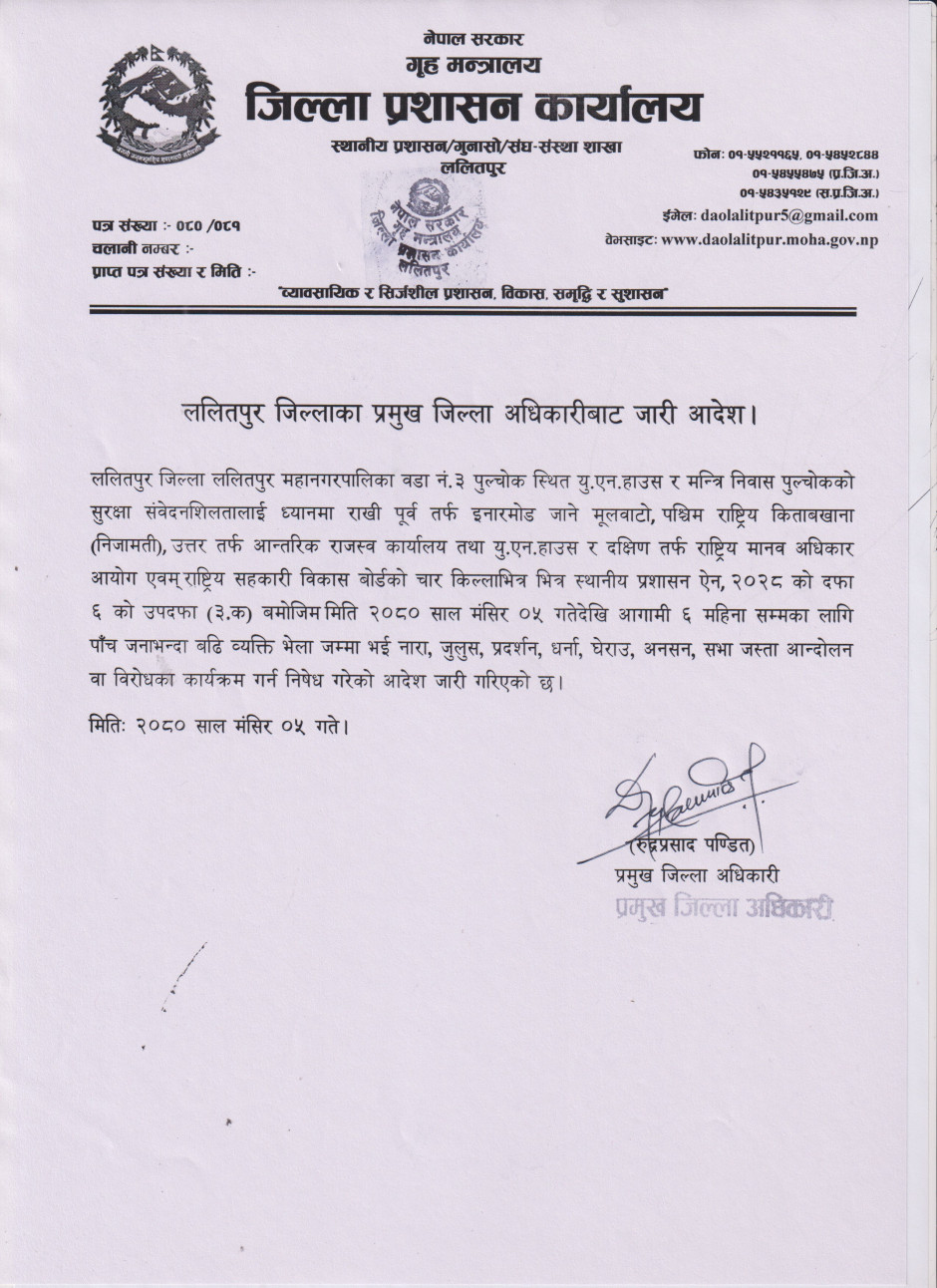 ललितपुर जिल्लाका प्रमुख जिल्ला अधिकारीबाट जारी आदेश