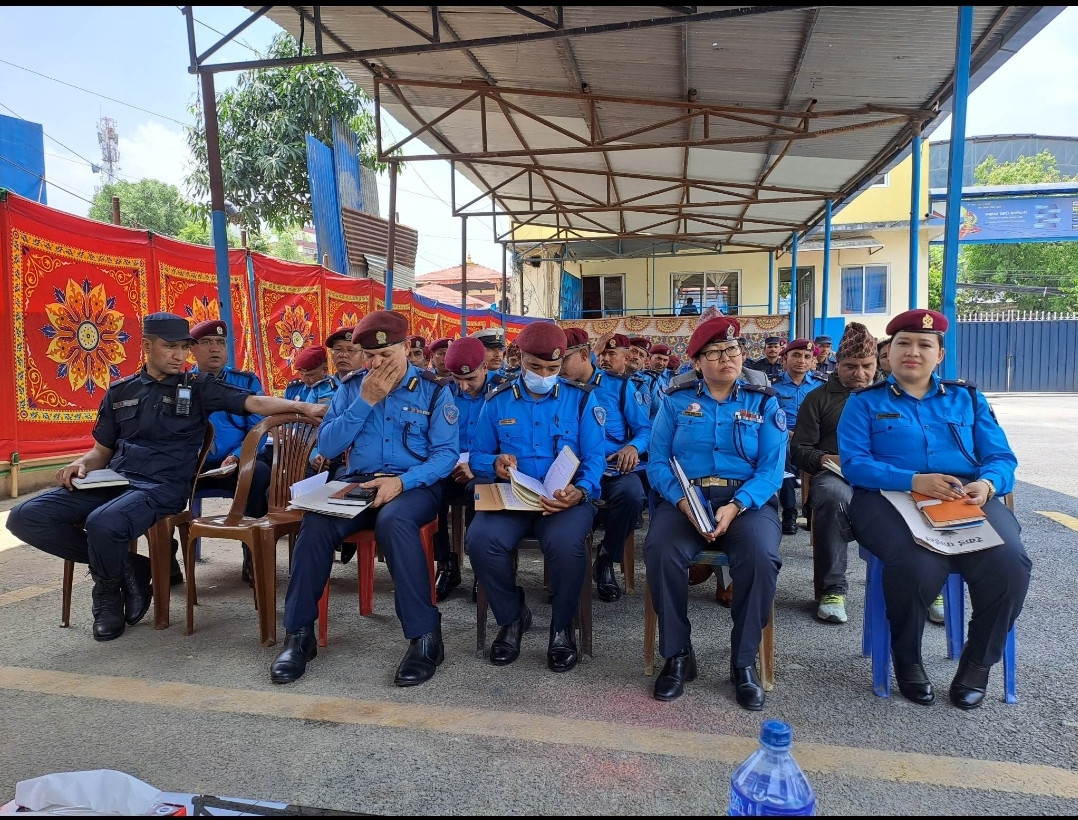 प्रमुख जिल्ला अधिकारी श्री रुद्रप्रसाद पण्डितज्यूबाट जिल्ला प्रहरी परिसर ललितपुरको निरीक्षण गरी सुरक्षा निकायका प्रमुखहरुलाई निर्देशन दिनु हुदै