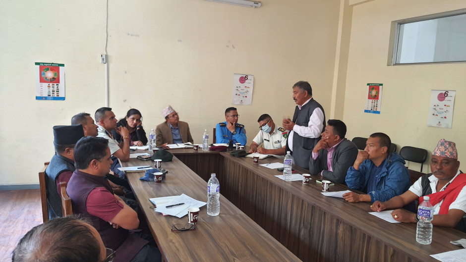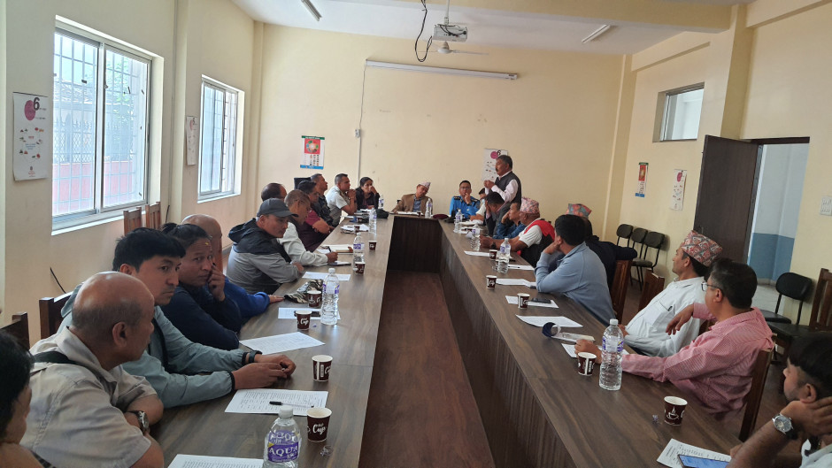 तस्बिर : मिति २०८१ साल बैशाख ११ गते प्रमुख जिल्ला अधिकारी श्री तुलसी बहादुर श्रेष्ठज्यूको अध्यक्षतामा जिल्लास्थित सुरक्षा निकायका प्रमुख ललितपुर महानगरपालिकाका प्रतिनिधि, गुठी संस्थान, स्थानीयस्तरका विभिन्न संस्था/समाजका प्रमुख तथा नागरिक अगुवाहरुको समेत सहभागिताम